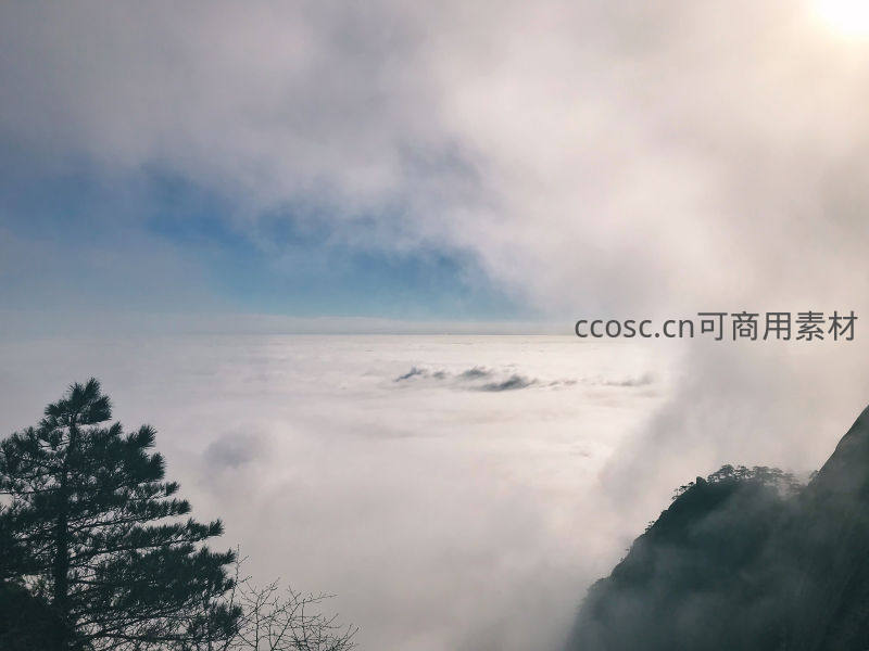 山巅云海缭绕,松影点缀仙境