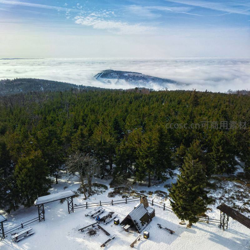雪后森林山顶俯瞰云海壮丽景观