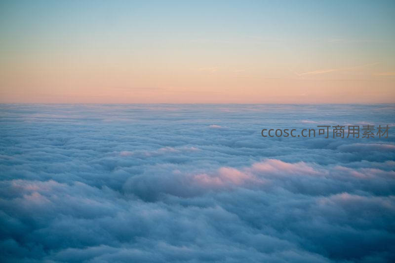 黎明时分,柔和的粉橙色霞光轻抚无垠云海,层层叠叠的云朵如波涛起伏,置身其中仿佛遨游仙境,宁静而壮美。