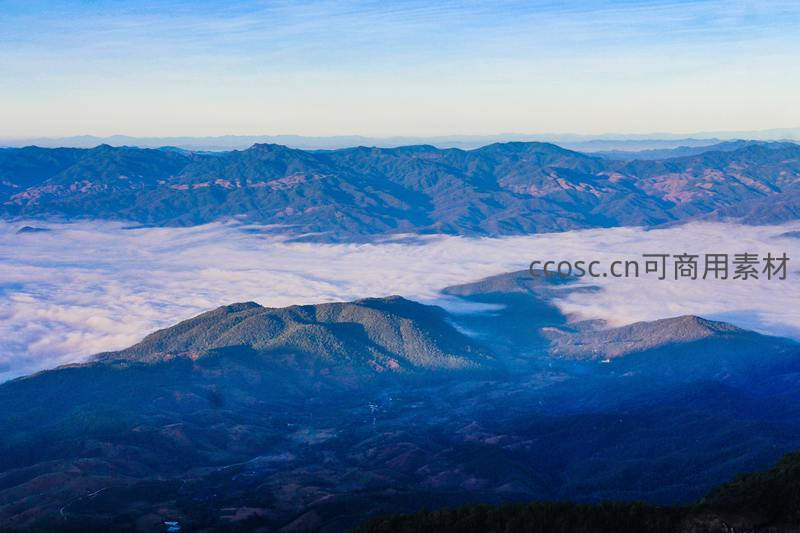 群山之巅云海翻腾如仙境
