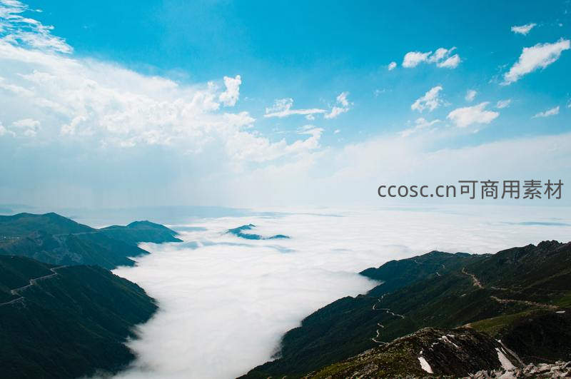 站在高处远眺,云海如棉絮铺满山谷,蜿蜒的公路穿梭其间,蓝天白云相映成趣,展现大自然鬼斧神工的壮阔之美。