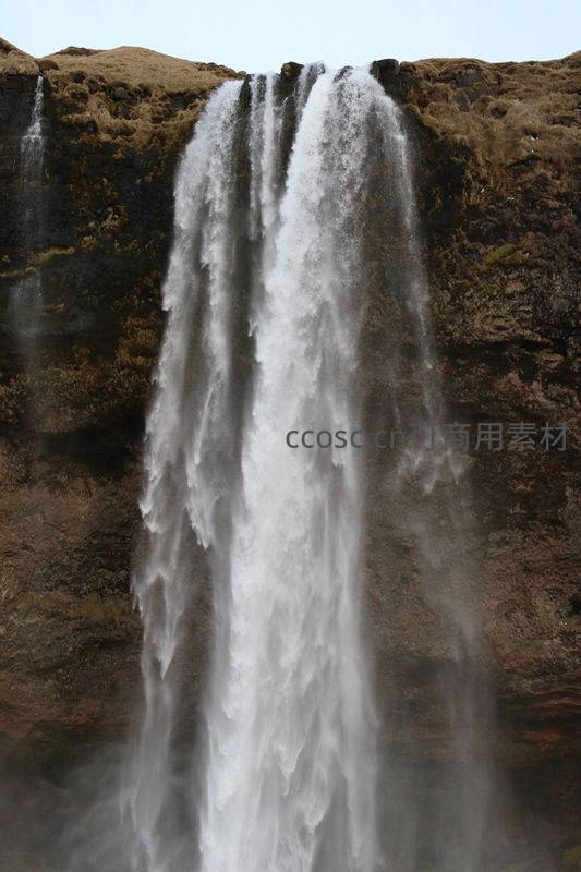 湍急的水流从高耸的褐色岩壁垂直冲下,激起漫天水雾,展现出大自然无与伦比的力量与美感,令人肃然起敬。