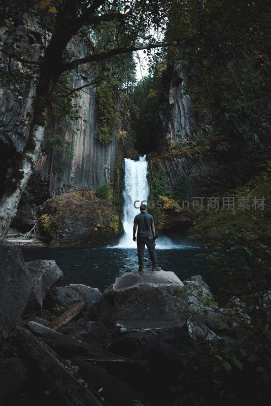 孤影立石观瀑,林深谷幽意悠然
