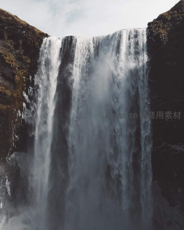 巨大的瀑布从高耸的悬崖顶端奔腾而下,激起漫天水雾,气势磅礴,展现了大自然无与伦比的力量与壮丽景色。