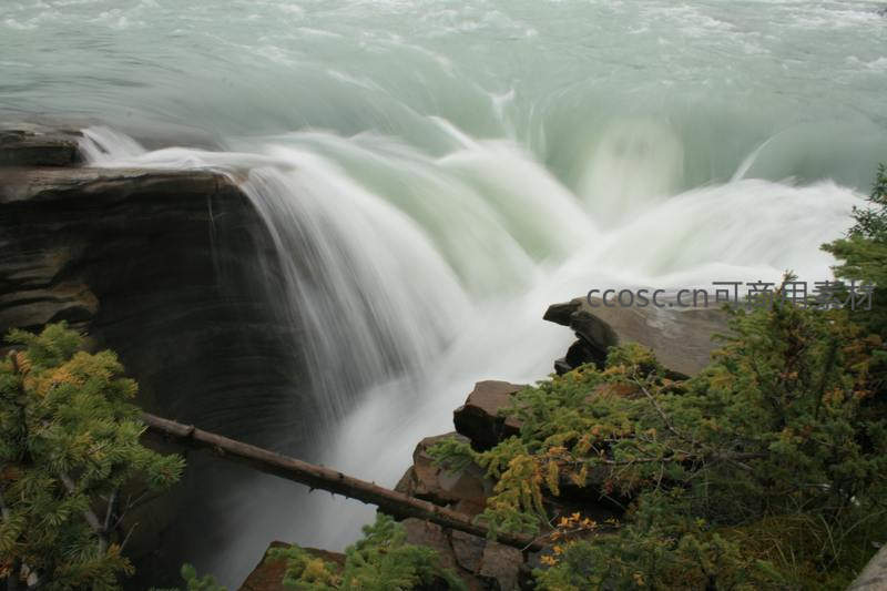采用长曝光技术捕捉瀑布水流的柔滑质感,水流猛烈冲击着深色岩石,周围绿植点缀,展现出大自然磅礴而细腻的力量之美。