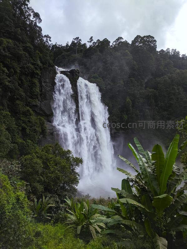 热带雨林中倾泻而下的壮观瀑布