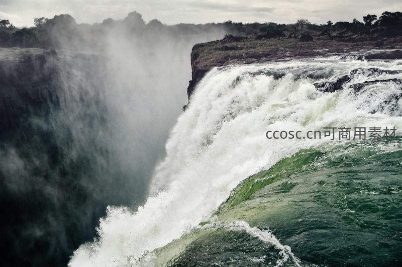 巨大的水流从悬崖边缘轰然坠落,激起滔天水雾与震耳欲聋的轰鸣,展现了大自然无与伦比的震撼与雄伟气势。