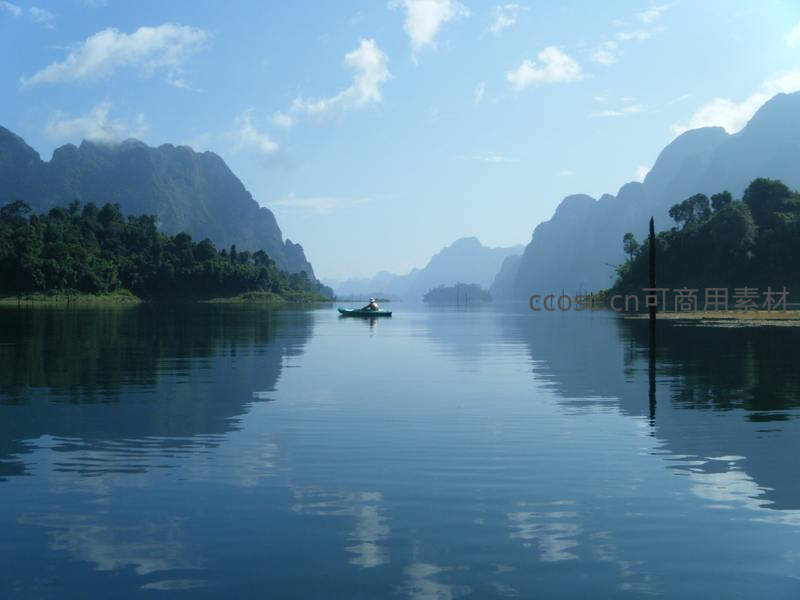 孤舟泛波青山绿水间