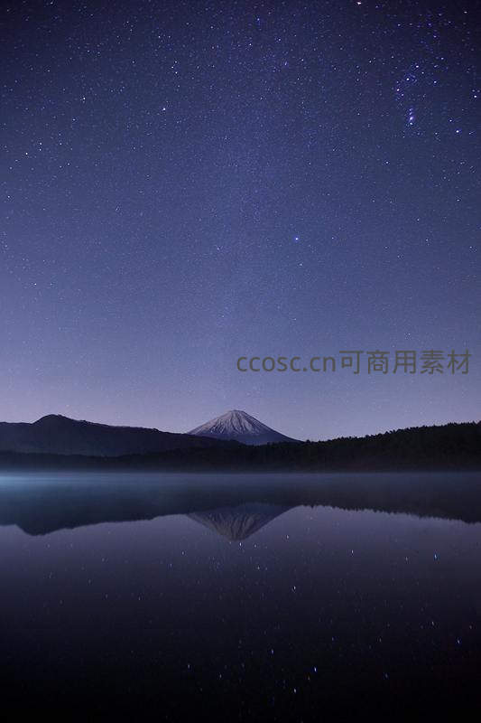 星空下的富士山静谧湖景