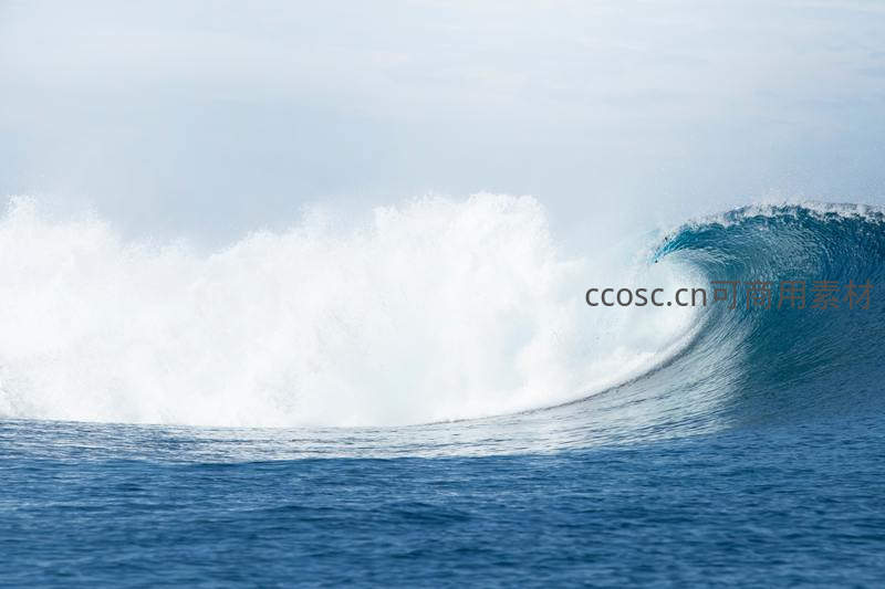 一堵巨大的蓝色海墙正优雅地卷曲,即将破碎成漫天白沫。其内部形成的完美管状弧线,是海洋力量与美学结合的极致体现,充满动感与张力。