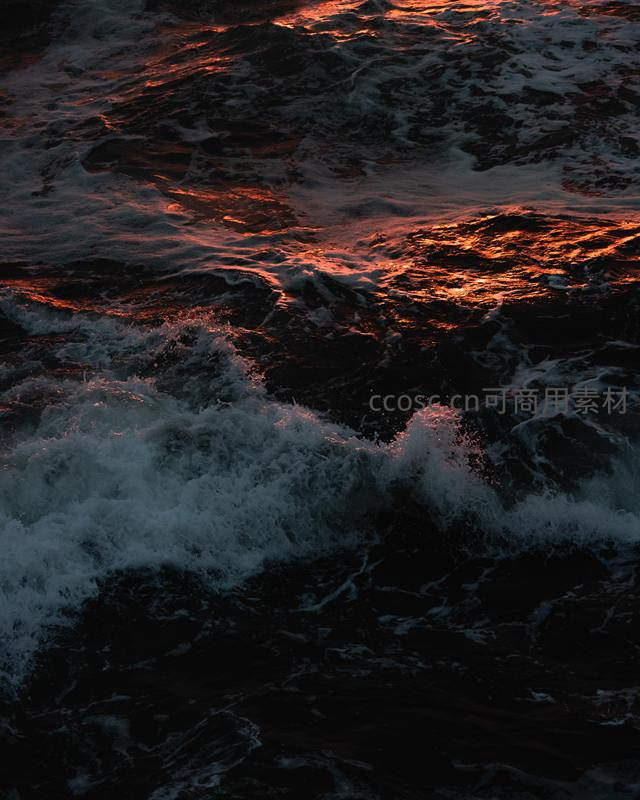 夕阳余晖洒在翻腾的海浪上