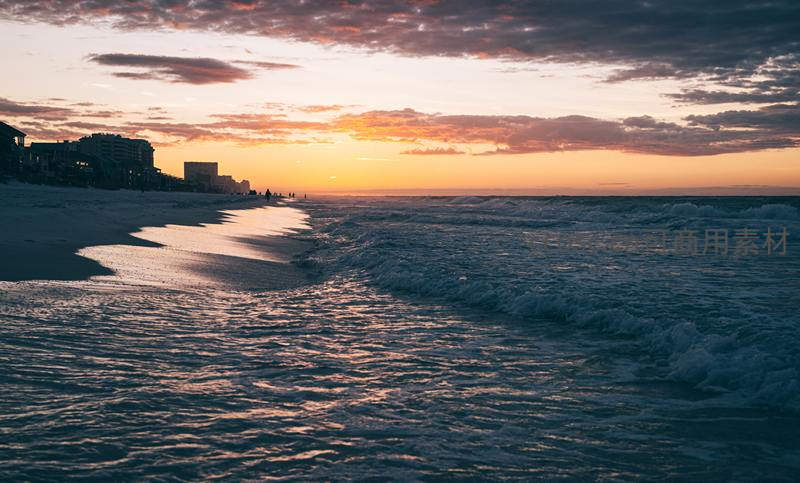 晨曦微光中的海岸,波涛与沙岸温柔相拥