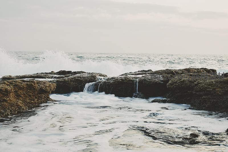 汹涌的海浪猛烈撞击着布满青苔的黑色礁石,激起层层白色泡沫,展现了大海原始而壮阔的力量与自然之美。