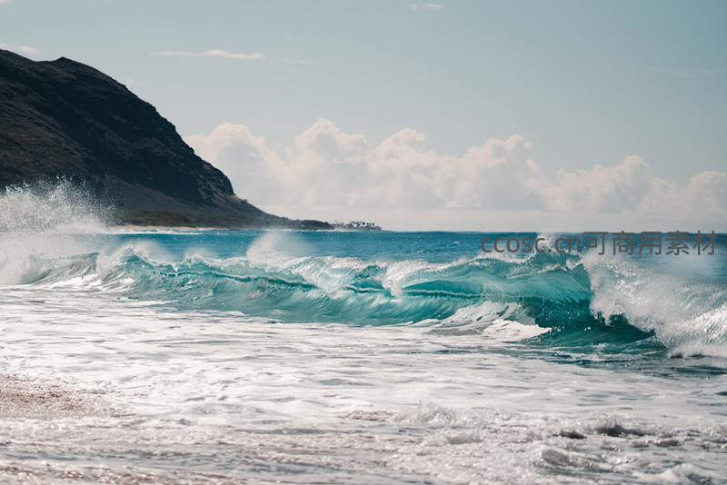 碧波汹涌拍打礁石,阳光下浪花飞溅的海岸线