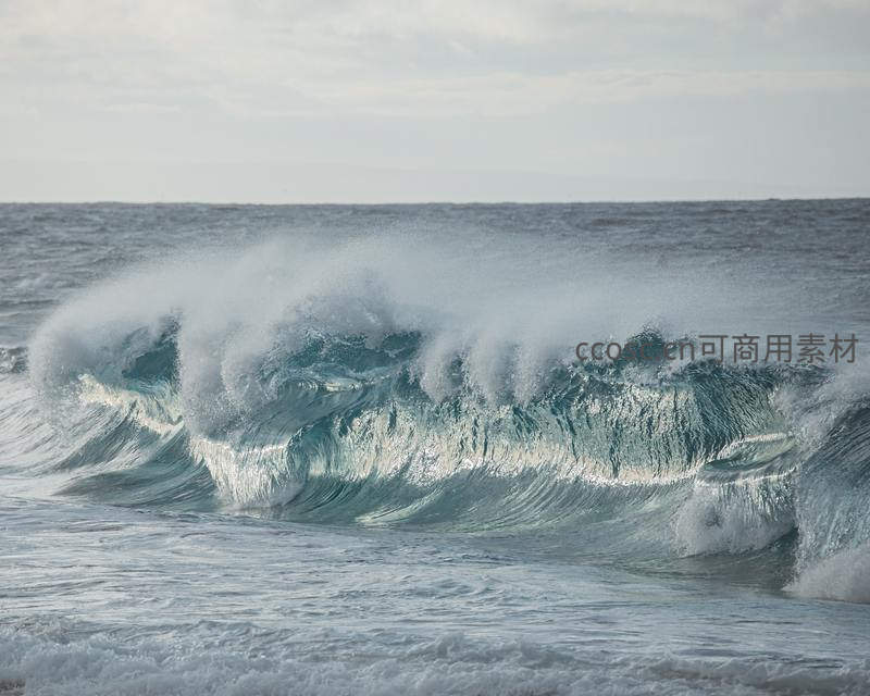 汹涌的巨浪在灰蒙天空下翻滚咆哮,水花四溅如烟雾弥漫,展现出海洋原始而震撼的力量,令人敬畏自然的伟大与狂野。
