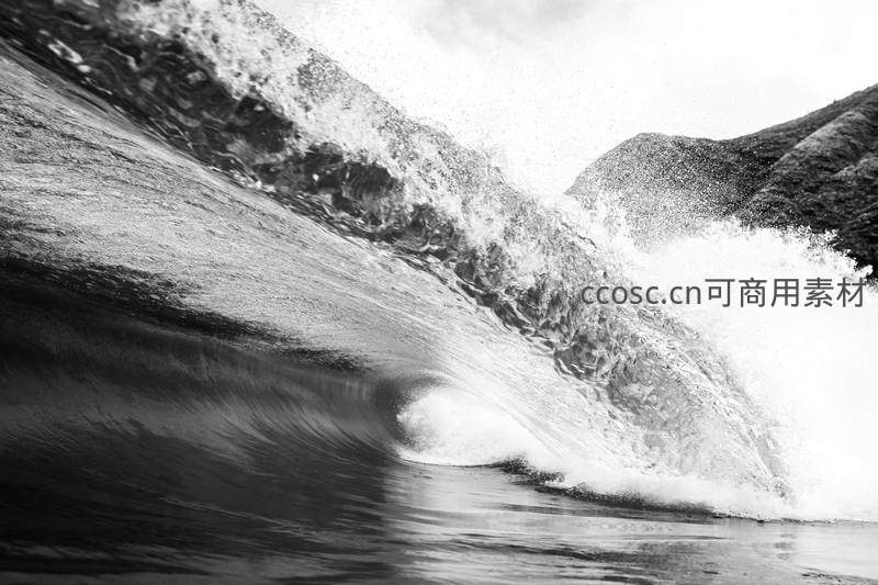 黑白光影下巨浪卷起的磅礴瞬间
