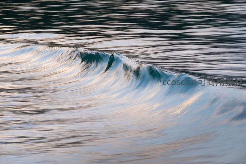 通过微距视角聚焦于一道正在形成的海浪,展现其流畅的曲线、晶莹的水珠与光影交错的细节。水体的透明感与流动感被极致放大,仿佛凝固了海洋澎湃力量中的一瞬优雅。