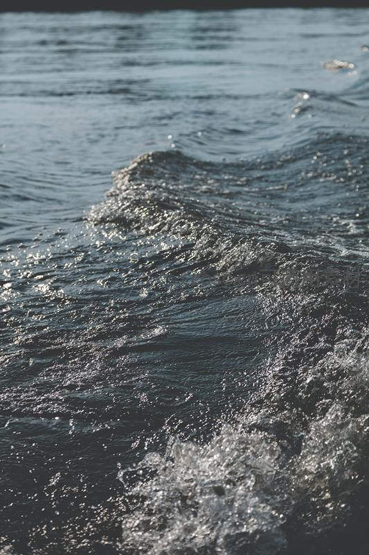 近距离捕捉海浪翻涌瞬间,深色水面在阳光下闪烁着细碎光芒,水珠飞溅,展现出水体流动的细腻质感与强大的自然力量。