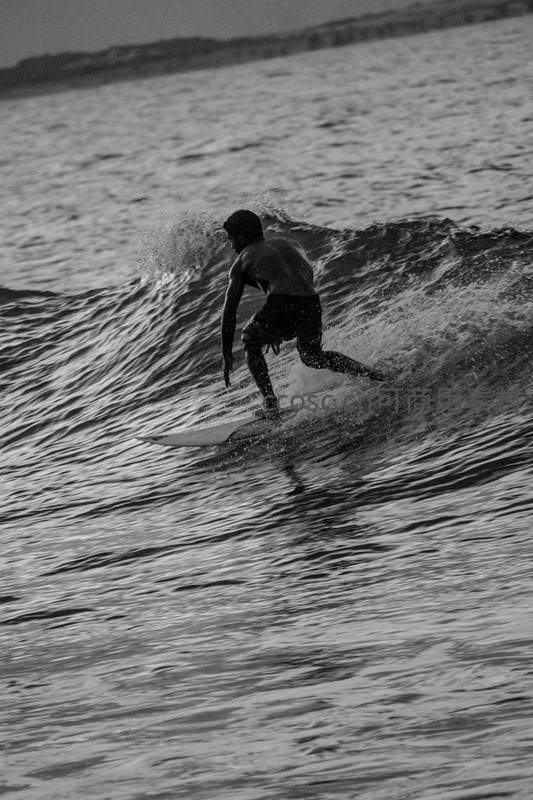 一名冲浪者在翻涌的海浪上保持平衡,水花四溅,展现出力量与技巧的完美结合,背景是朦胧的海岸线。