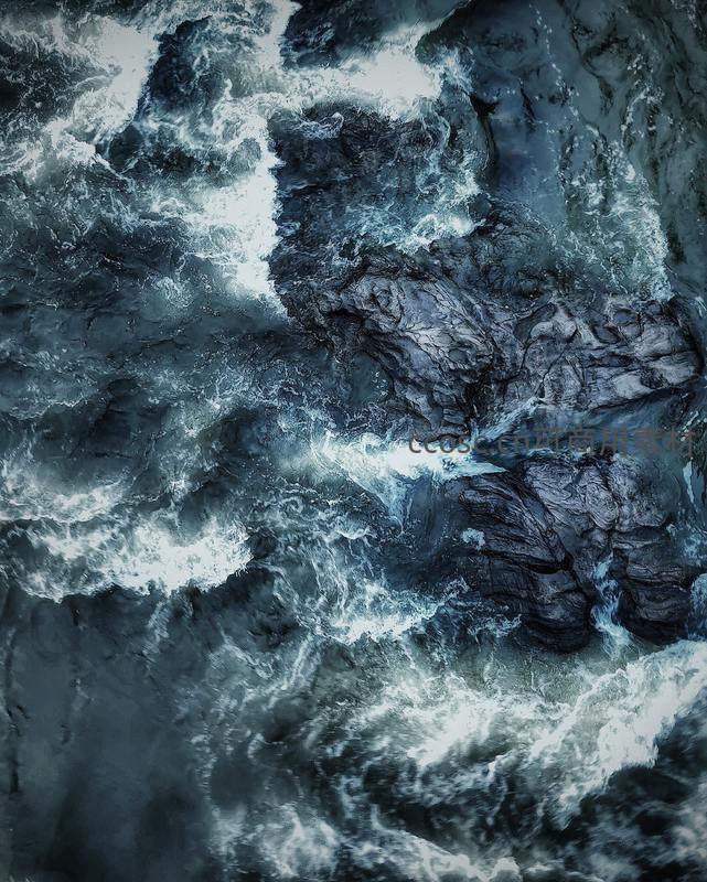 航拍视角下的激流漩涡,水流与岩石交织成抽象画卷