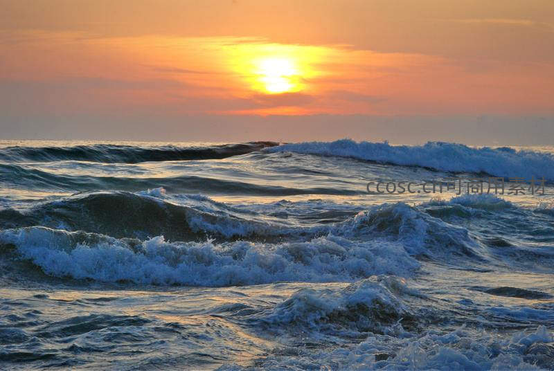 金色夕阳下的汹涌海浪,波涛拍岸壮丽无比