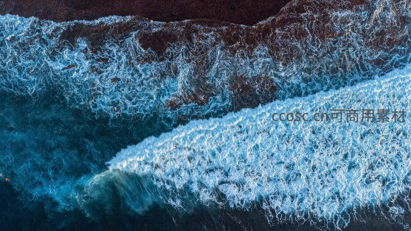 深蓝海浪航拍特写,泡沫如雪铺展