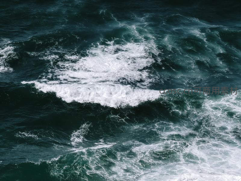 深蓝海面浪花翻滚,白色泡沫如丝如缕