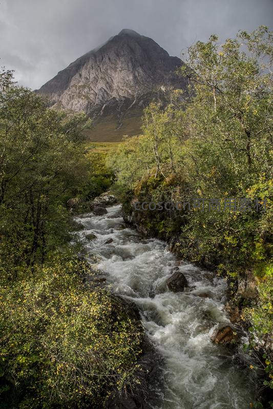 山涧激流奔腾,峻岭云雾缭绕气势磅礴