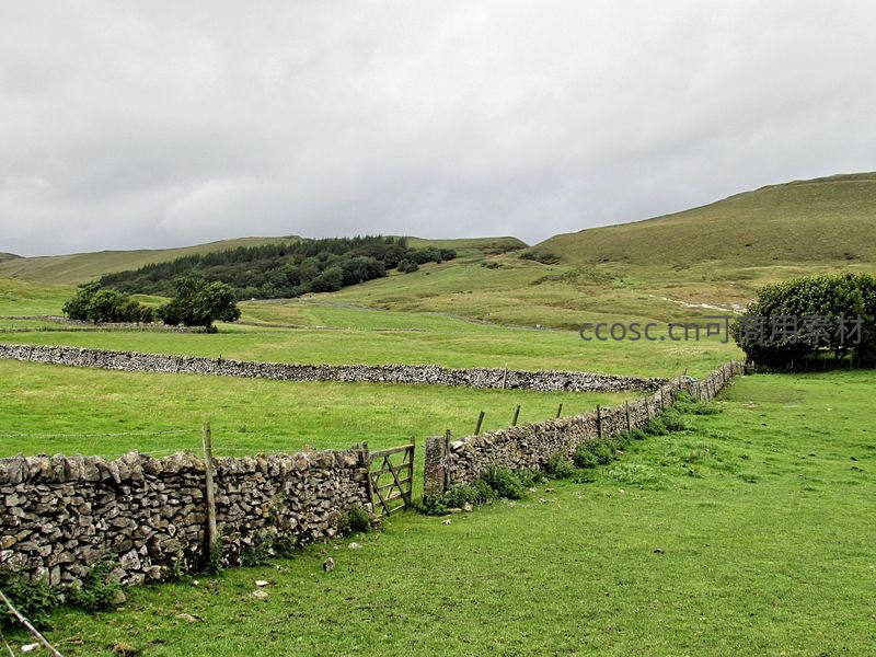 石墙蜿蜒绿野无垠