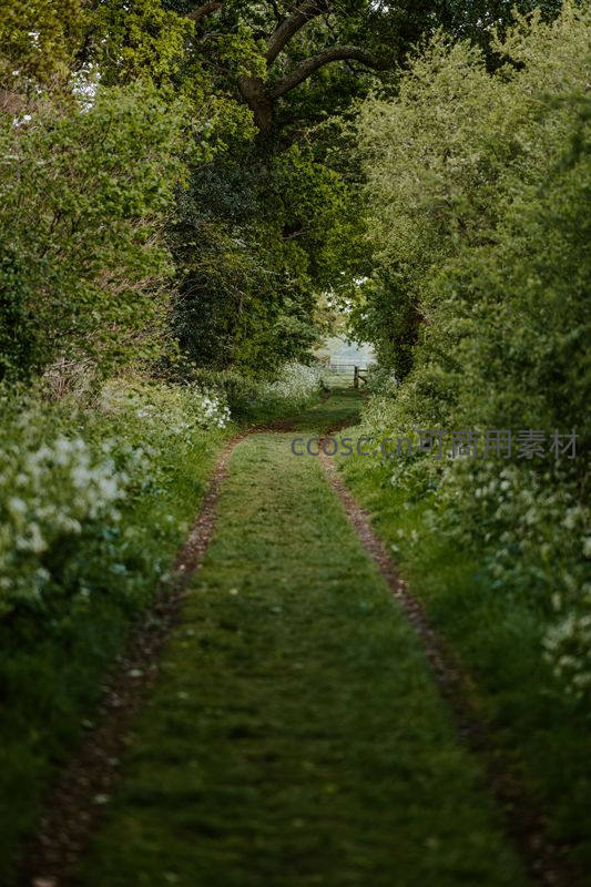 绿意盎然小径穿行于繁茂树丛