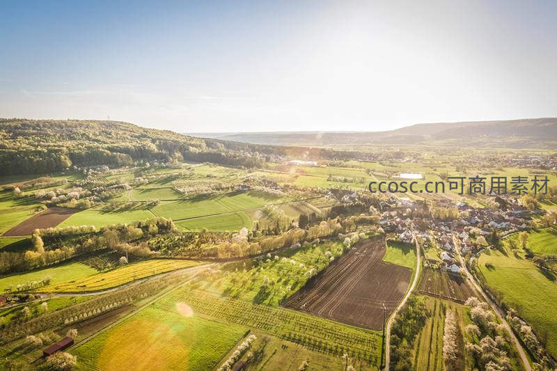 阳光普照田园小镇,生机盎然