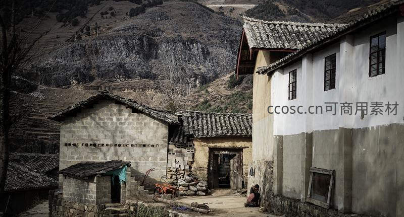 依山而建的古老村落,灰瓦白墙的房屋错落有致,背后是层层叠叠的梯田与陡峭山岩,展现出人与自然和谐共生的乡土风貌。