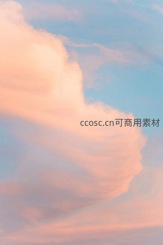 夕阳将云层染成温柔的粉橙色,与清澈的蓝天形成柔和对比,云朵形态飘逸,仿佛一幅天然的油画,令人沉醉于大自然的色彩魔法。