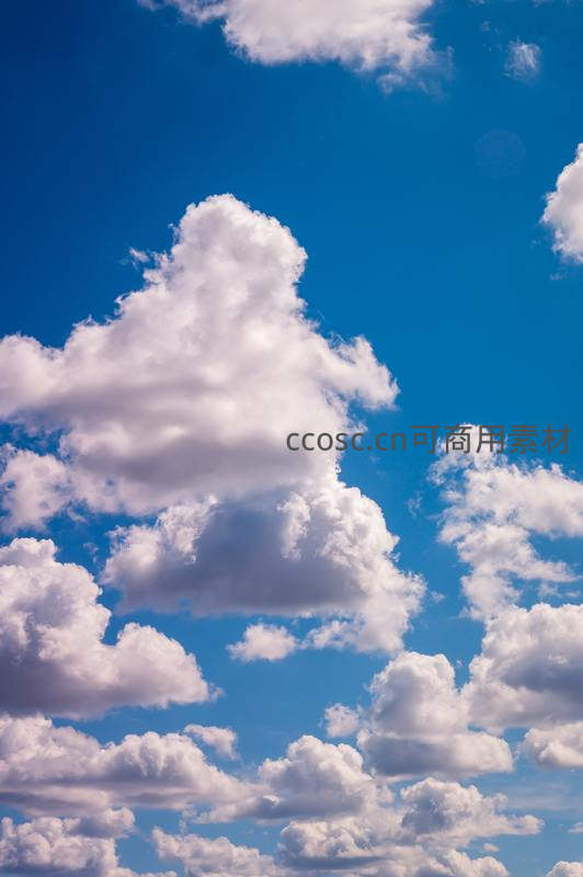 纯净的蔚蓝天空中,蓬松洁白的云朵悠然飘浮,阳光洒落,光影交错,营造出宁静祥和的氛围,令人心旷神怡。