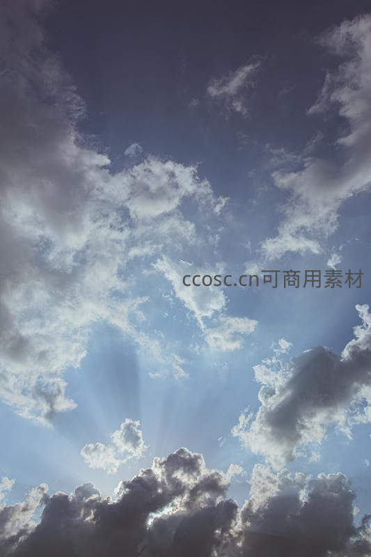 阳光穿透云层洒下圣光,蓝天白云壮丽无比