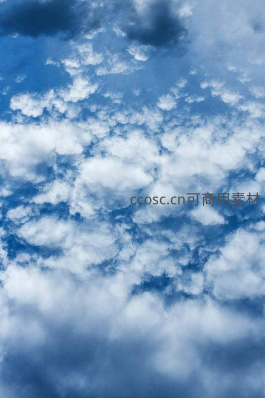 广阔的蔚蓝天空中,蓬松洁白的云朵层层叠叠,形态各异,构成一幅宁静而壮丽的天然画卷,是理想的背景或纹理素材。