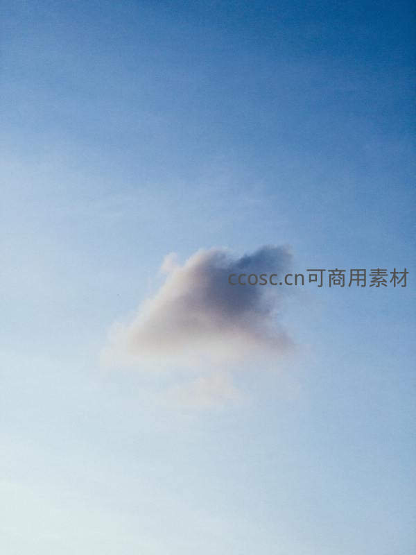 一片形态独特的孤云静静悬浮在纯净的蓝色天幕中央,构图极简,意境空灵,给人以无限遐想和内心的平静。