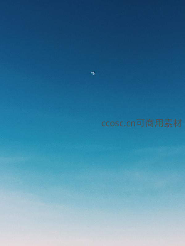 高空中孤月悬于渐变蓝幕之上