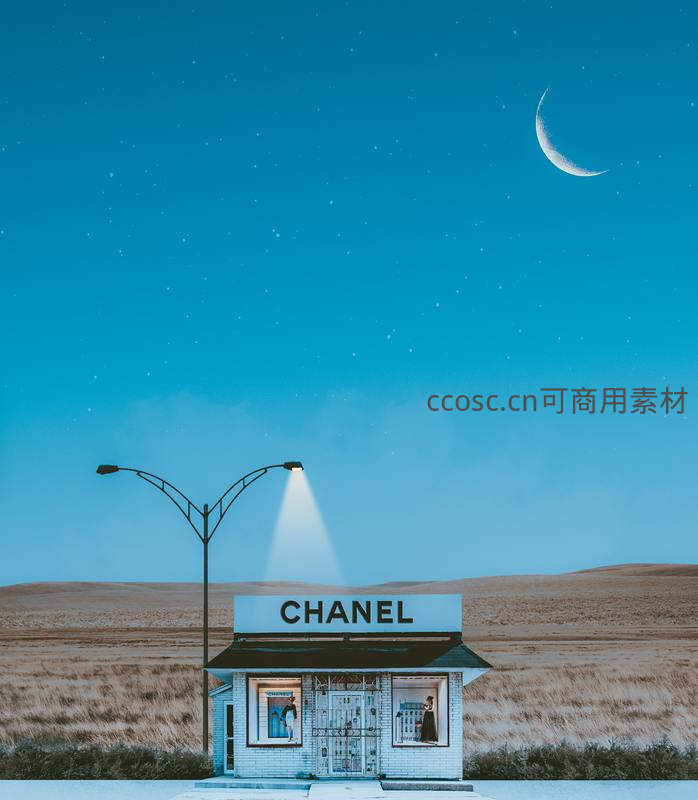 荒漠中的香奈儿小店月夜静谧