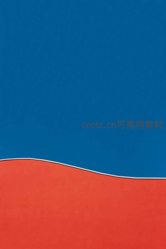 以纯粹的蓝色与红色块面构成,一条白色曲线优雅地分割开两个色域,营造出极简而富有张力的视觉效果。