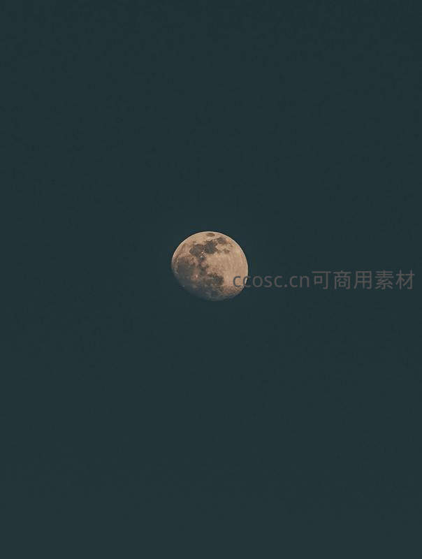 一轮圆润的满月高悬于深蓝色的夜空,表面清晰可见环形山与月海,营造出宁静而神秘的宇宙氛围。
