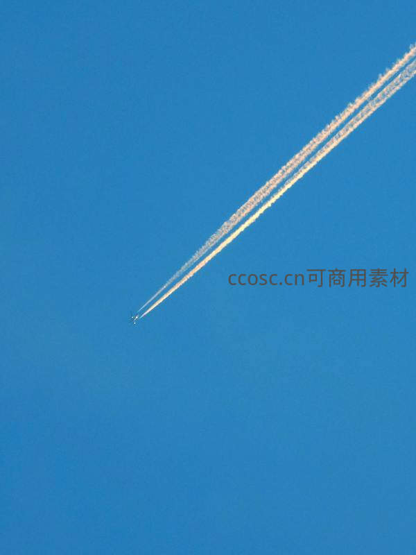 纯净无瑕的蔚蓝天空中,一架飞机飞过留下一道优美的白色航迹,画面简洁而充满动感与希望。