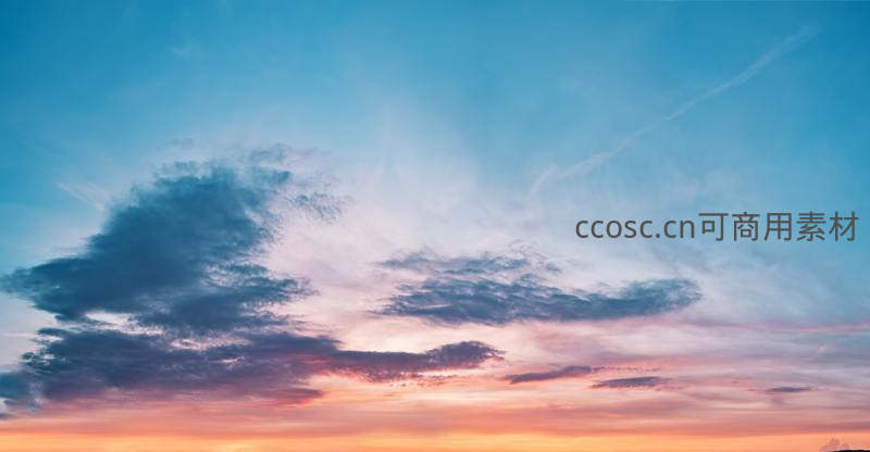 绚烂的晚霞将天空渲染成橙红与淡蓝交织的画卷,厚重云层边缘镶着金边,宁静而壮美,令人沉醉于大自然的鬼斧神工。