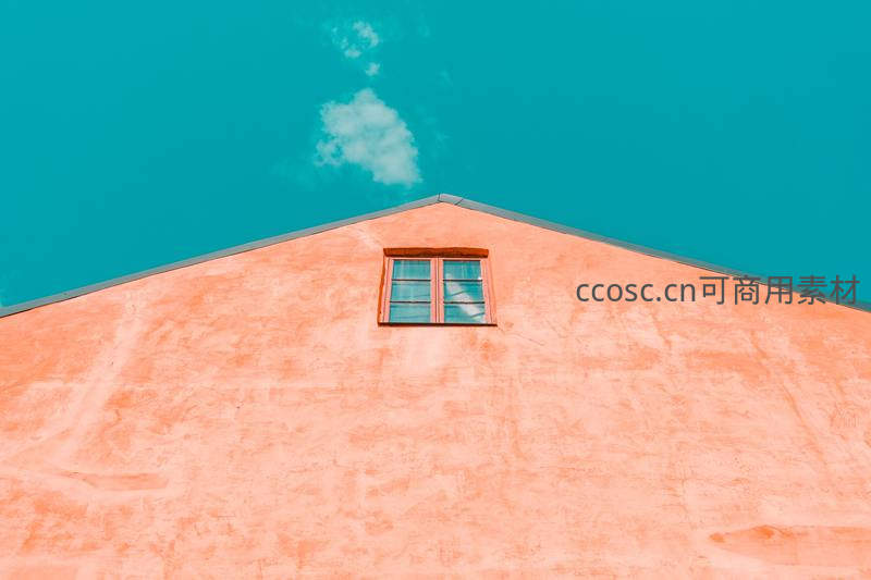 橙色墙面上的孤窗与碧空