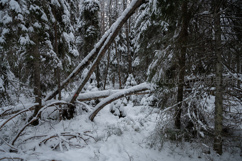 倒伏雪松横卧林间