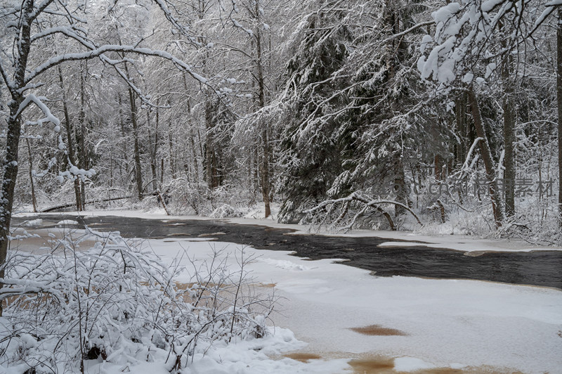 冬林雪溪,天地一色