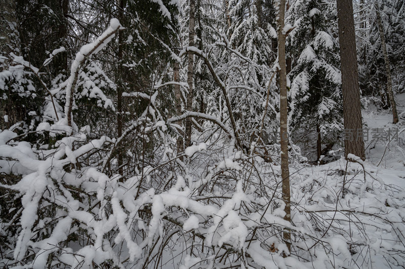 雪覆枝头静谧森林