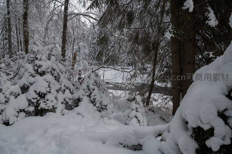 雪林深处,溪水隐现