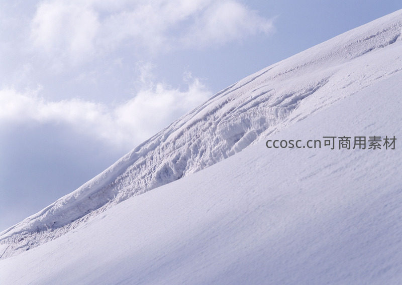 蓬松白云飘过雪坡,投下斑驳的影子,阳光照射下,雪面冰晶闪烁,营造出诗意而清冷的高山景象。