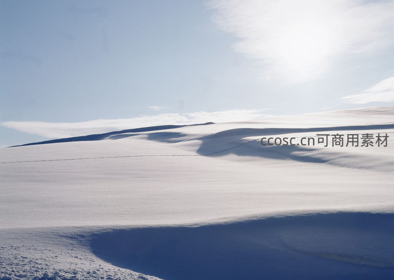 阳光洒落雪坡投下深邃阴影